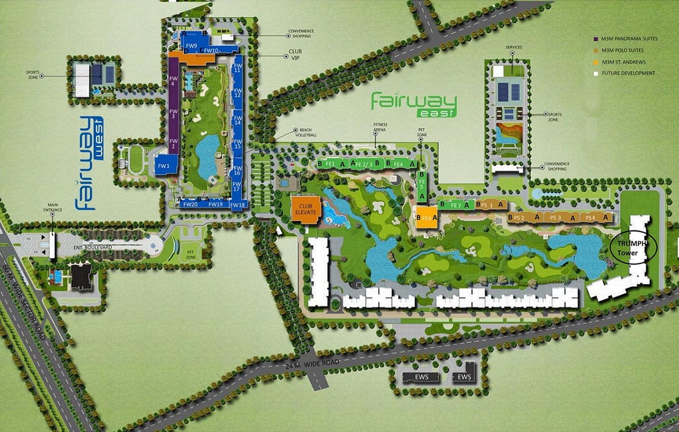 • Prime Location: Prominently located on Southern Peripheral Road (Golf Course Extension Road), one of the widest roads in Gurgaon (90 mtrs), recently announced as NH 236.